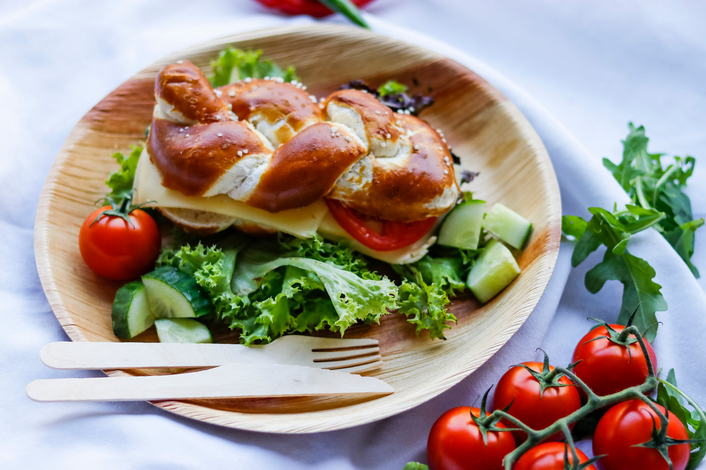 Unser Palmblatt verleiht deinen Speisen einen natürlichen Look und gutes Karma: chemiefrei, kompostierbar und fair produziert.
