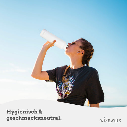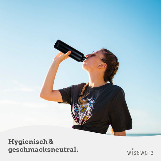 Genieße unterwegs frisches Wasser mit unserer Edelstahl-Trinkflasche! Unsere Wiseware Trinkflasche aus hochwertigem Edelstahllegierung 304, 18/8, i...