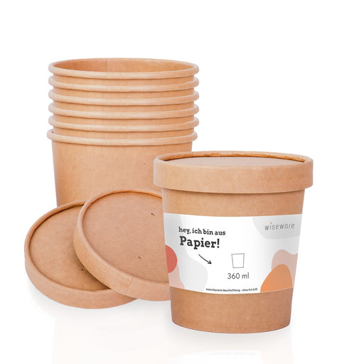 • Wiseware Einweg Suppenbecher To Go - Suppenbehälter aus Papier 360ml - Biologisch abbaubare Pappbecher ohne PLA/ PE - Nachhaltige Einmal Suppenschale mit BIO- Beschichtung