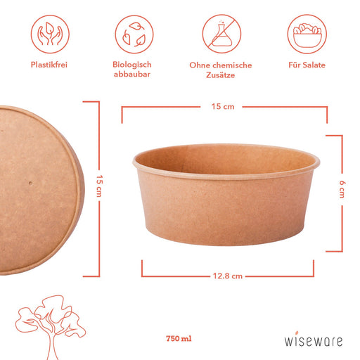 Nachhaltige Salatschale aus Papier für unterwegs Genieße deine Mahlzeiten unterwegs ganz ohne Plastikmüll mit unserer braunen Salatschale aus umwel...