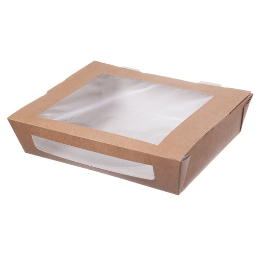 • Papier Snackbox mit PLA-Sichtfenster - braun 1200ml - 200 Stück