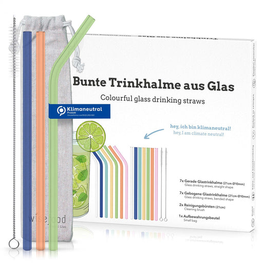 Nachhaltiges Glastrinkhalm Set - Genieße dein Getränk mit Stil und Umweltbewusstsein Entdecke unser Wiseware Glastrinkhalm Set als ideale Alternati...