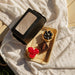 Der Boden aus kompostierbarem Palmblatt dient dank der edlen Holzoptik gleichzeitig als stilvoller Teller, das Sichtfenster besteht aus kompostierbarer Zellulose und der patentierte Verschluss sorgt für sicheren Halt.