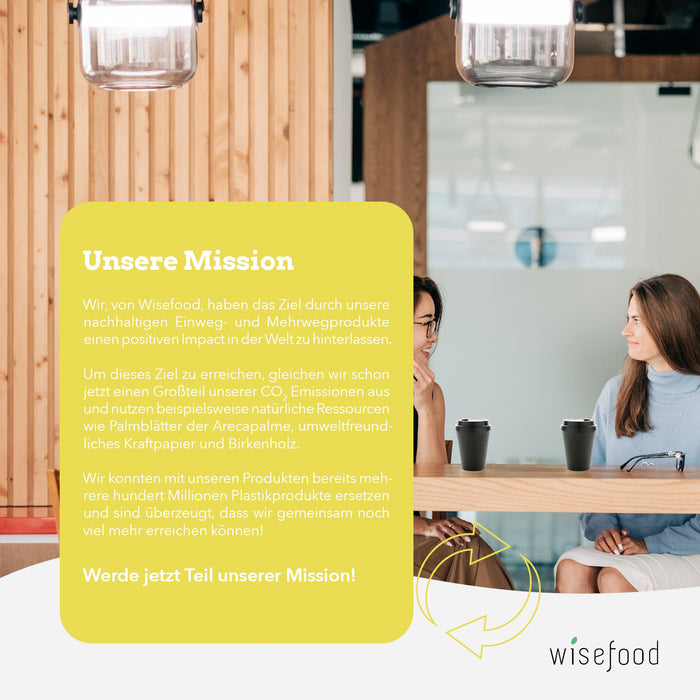 Unsere Wiseware Mehrwegbecher To Go sind die ideale Alternative zu Einweg Kaffeebechern. Durch die hochwertige Verarbeitung ist er geschmacksneutral und sogar spülmaschinengeeignet.
